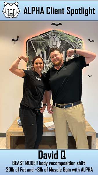 Over the last six months, ALPHA Men’s Health clients have shed 650lb+ of Fat and gained 600lb+ of Muscle through combining our medical treatments with positive lifestyle changes.